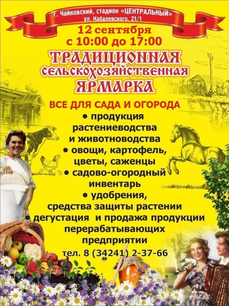 Жителей Чайковского округа приглашают на традиционную осеннюю сельскохозяйственную ярмарку.