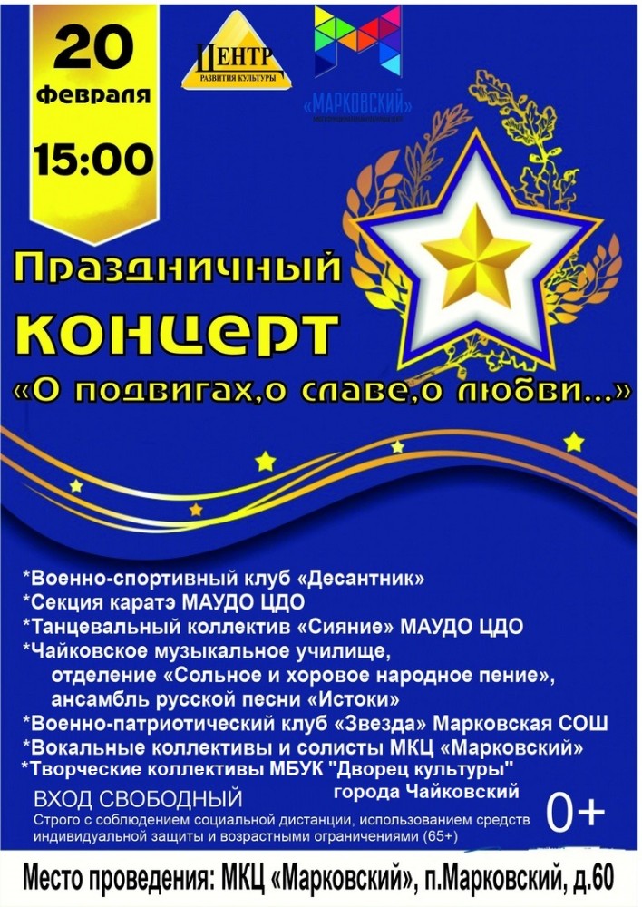 Жителей Чайковского городского округа приглашают на традиционный праздничный концерт, посвящённый Дню защитника Отечества.