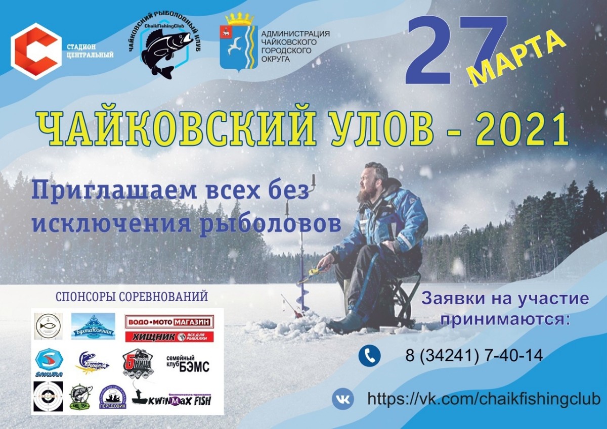 Подробно с Положением о проведении первенства по зимней рыбалке «Чайковский улов-2021» можно ознакомиться в группе Чайковский рыболовный клуб «ChaikFishingClub» в социальной сети ВКонтакте. Там же можно пройти предварительную регистрацию.