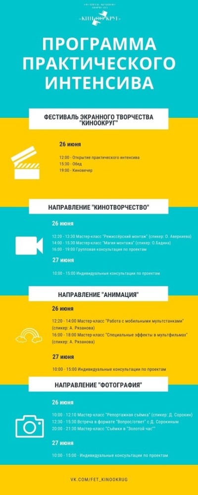 Организаторы приняли более 50-ти заявок от жителей не только Пермского края, но и Удмуртской Республики. В марте уже состоялось онлайн-обучение, которое проходило в социальной сети в ВКонтакте. На обучении участники познакомились со спикерами и начали работу над своими творческими проектами. Очная встреча, которая состоится в эти выходные, станет следующим этапом реализации проекта фестиваля экранного творчества "КиноОкруг"!