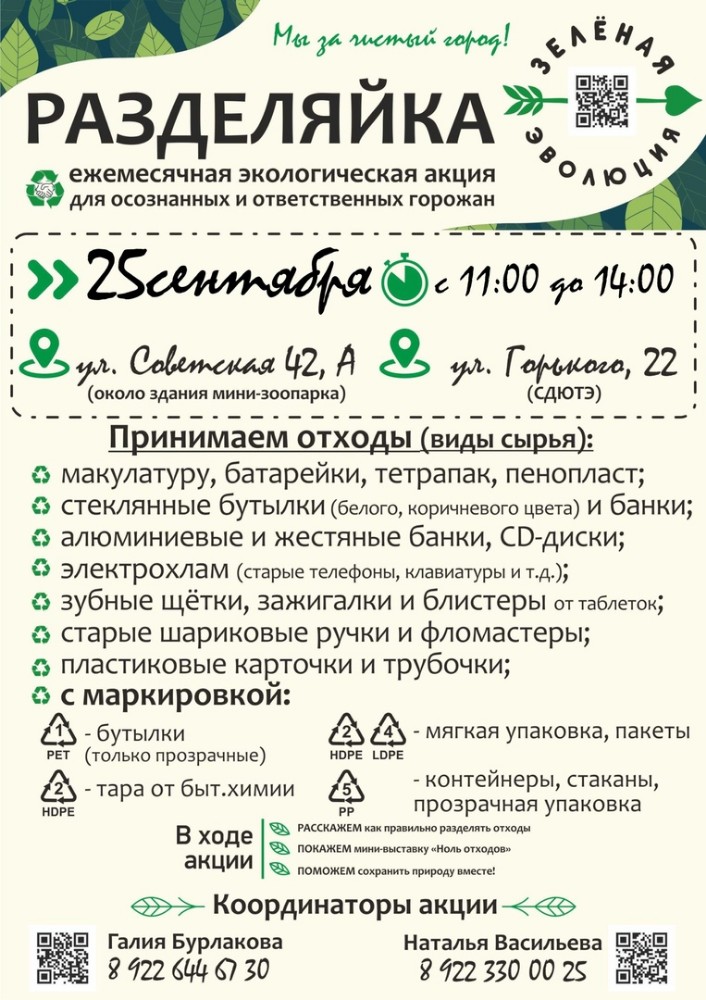 Жителей Чайковского округа приглашают на традиционную экологическую акцию по сбору отходов «Разделяйка», которая состоится уже в ближайшую субботу, 25 сентября.