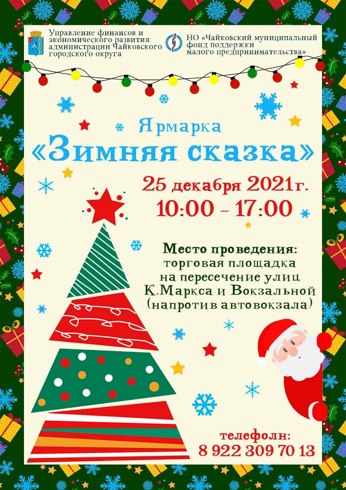 Гостям и жителям Чайковского городского округа предлагают провести время с пользой и удовольствием, посетив новогоднюю ярмарку «Зимняя сказка».