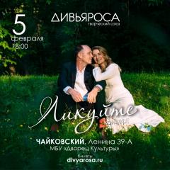 В ближайшие выходные в Чайковском впервые состоится концерт творческого союза "Дивьяроса". Их песни окрыляют, вдохновляют и помогают соприкоснуться с самыми тонкими и порой недоступными нашему сознанию струнами нашей Души.