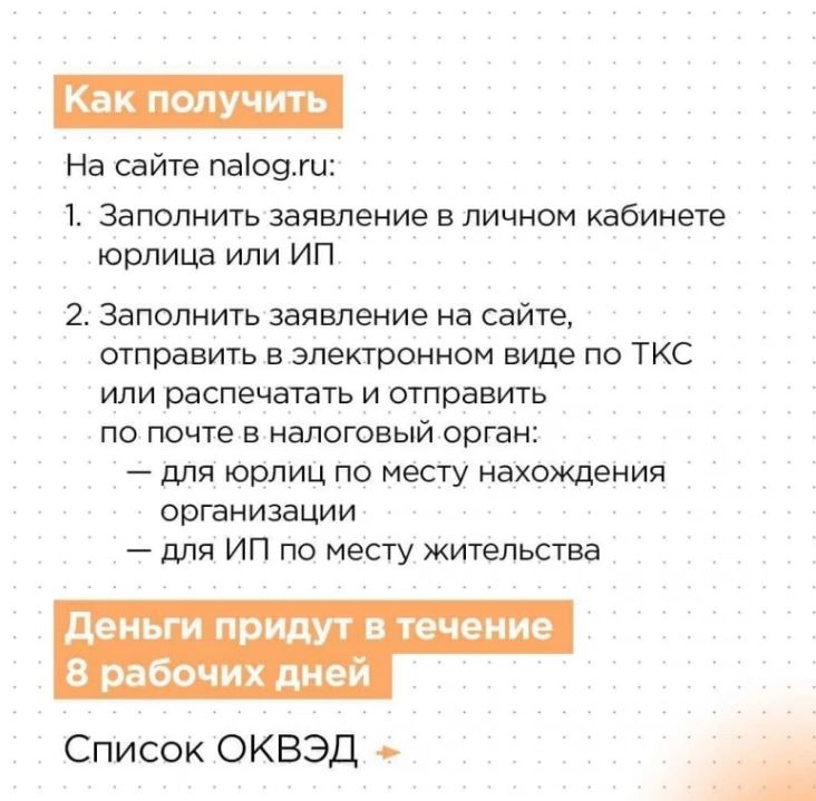 Заявки на гранты предприниматели смогут подать с 1 ноября по 15 декабря дистанционно — через личный кабинет на сайте Федеральной налоговой службы (ссылка здесь). Средства начнут поступать на счета спустя восемь дней с момента отправления заявки.
