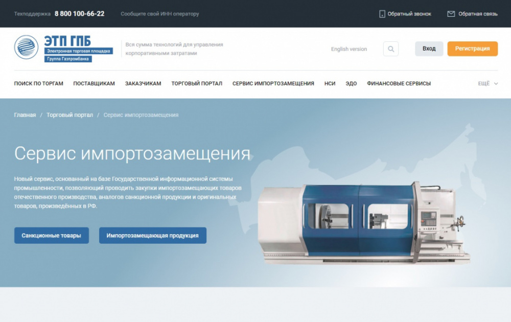 Скриншот: https://etpgpb.ru/portal/import-substitution/