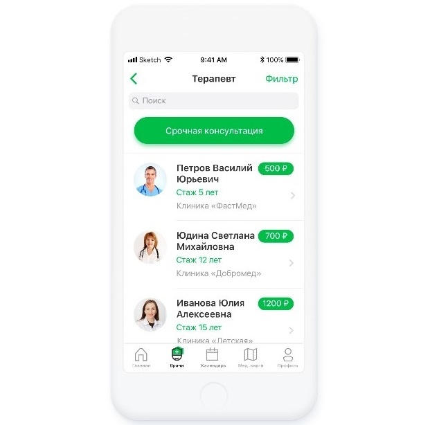 В приложении представлены сотни врачей из десятков медицинских сетей по всей России. Это практикующие специалисты, которые совмещают дистанционное общение с очными приёмами пациентов в клиниках.