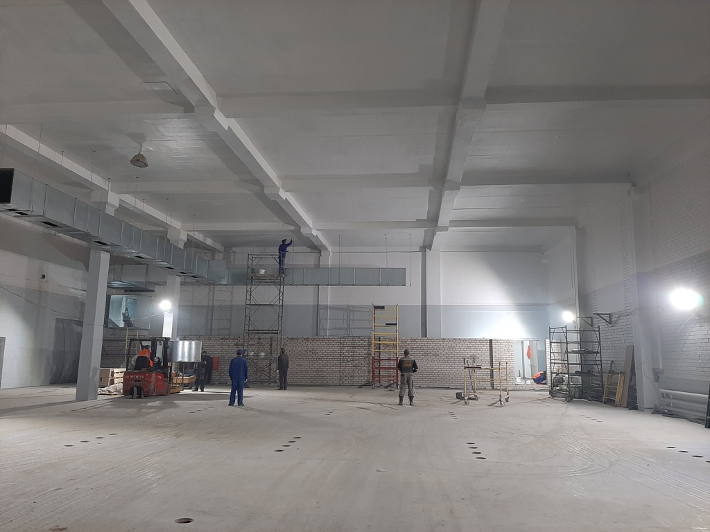 В цеху ведутся строительные работы: после проведения коммуникаций залиты полы, начался монтаж воздуховодов для обеспечения климата. Пока ведутся строительные работы, с разных стран в Чайковский направляется оборудование. В первых числах декабря уже прибыла первая партия новых ткацких станков – станки выгружены и ожидают монтажа.