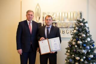 26 декабря на торжественном собрании в администрации ООО «Газпром трансгаз Чайковский» генеральный директор Сергей Сусликов вручил Почётную грамоту ПАО «Газпром» и Благодарственное письмо губернатора Пермского края Антону Каменских, электрогазосварщику 6 разряда Пермского ЛПУМГ - филиала ООО «Газпром трансгаз Чайковский».