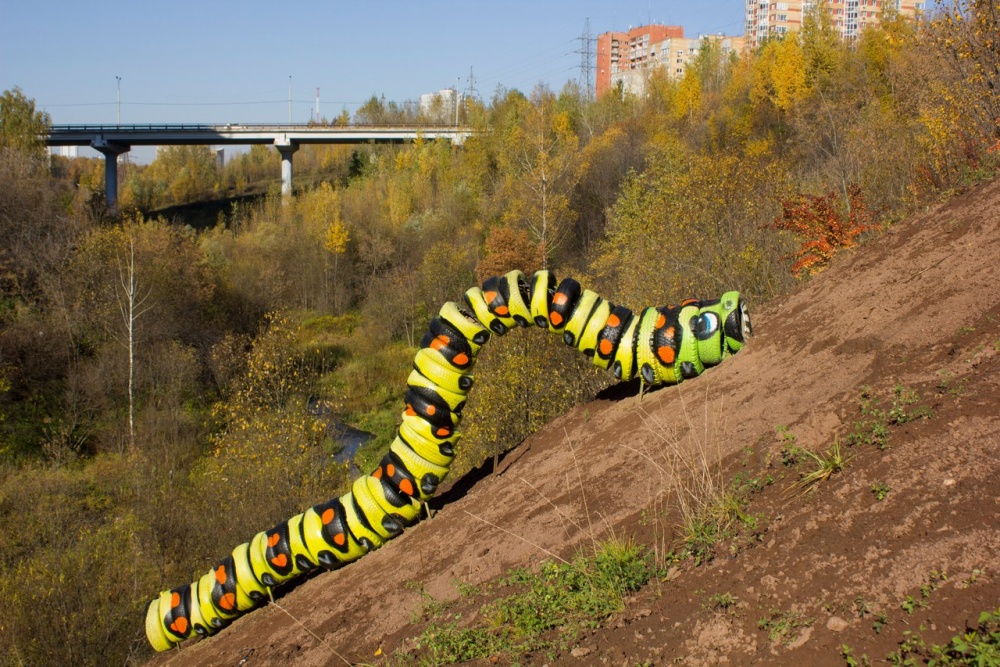 В Перми на склоне реки Егошихи появилась гигантская гусеница. Необычный арт-объект из старых автомобильных покрышек создал пермский художник Александр Жунев. Об этом он написал на своей странице в соцети. «Вокруг долины реки Егошихи стихийно разбросано огромное количество гаражей, откуда автолюбители выбрасывают старые покрышки, а дети скатывают их вниз прямо в реку. Все долины малых рек, зеленые «лёгкие» города, завалены всевозможным мусором. В цивилизованных странах в таких местах разбивают парки и создают удобную инфраструктуру для прогулок, а у нас используют как свалки», - рассказал художник. По его словам, ползущая вверх «гусеница» символизирует то, как медленно и трудно собирать и поднимать обратно весь этот мусор.