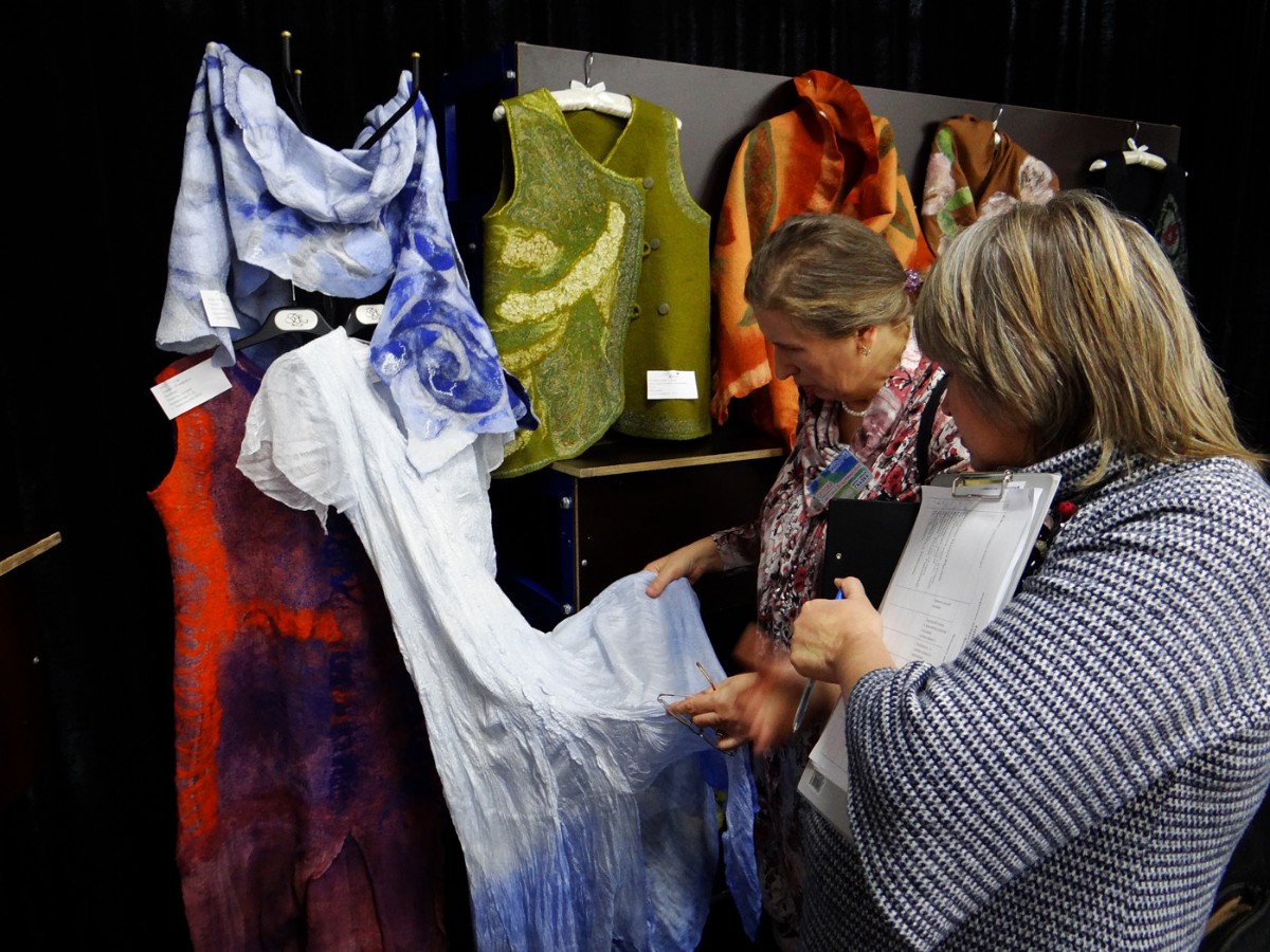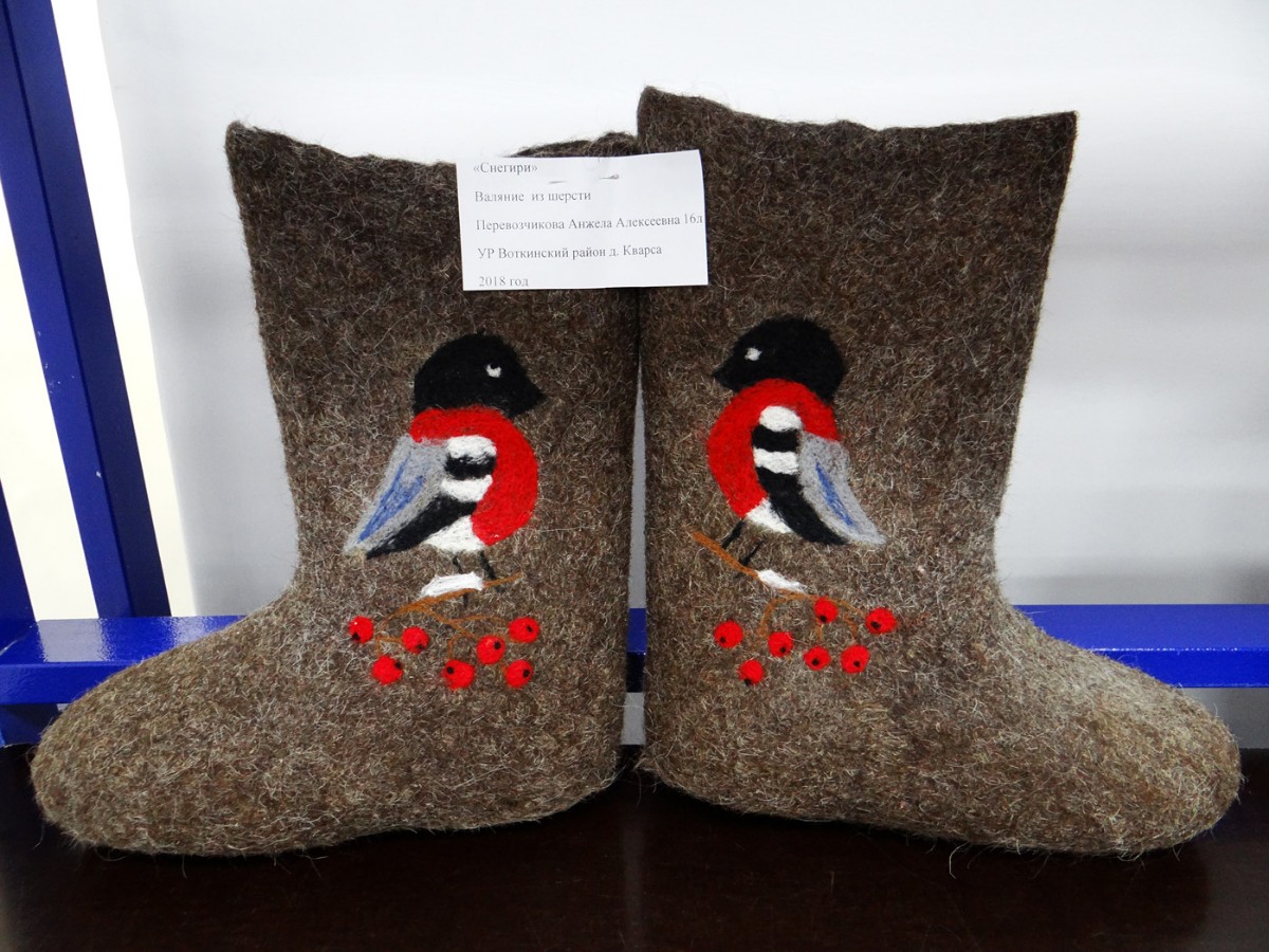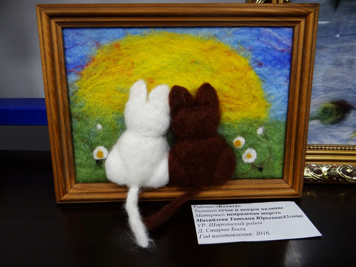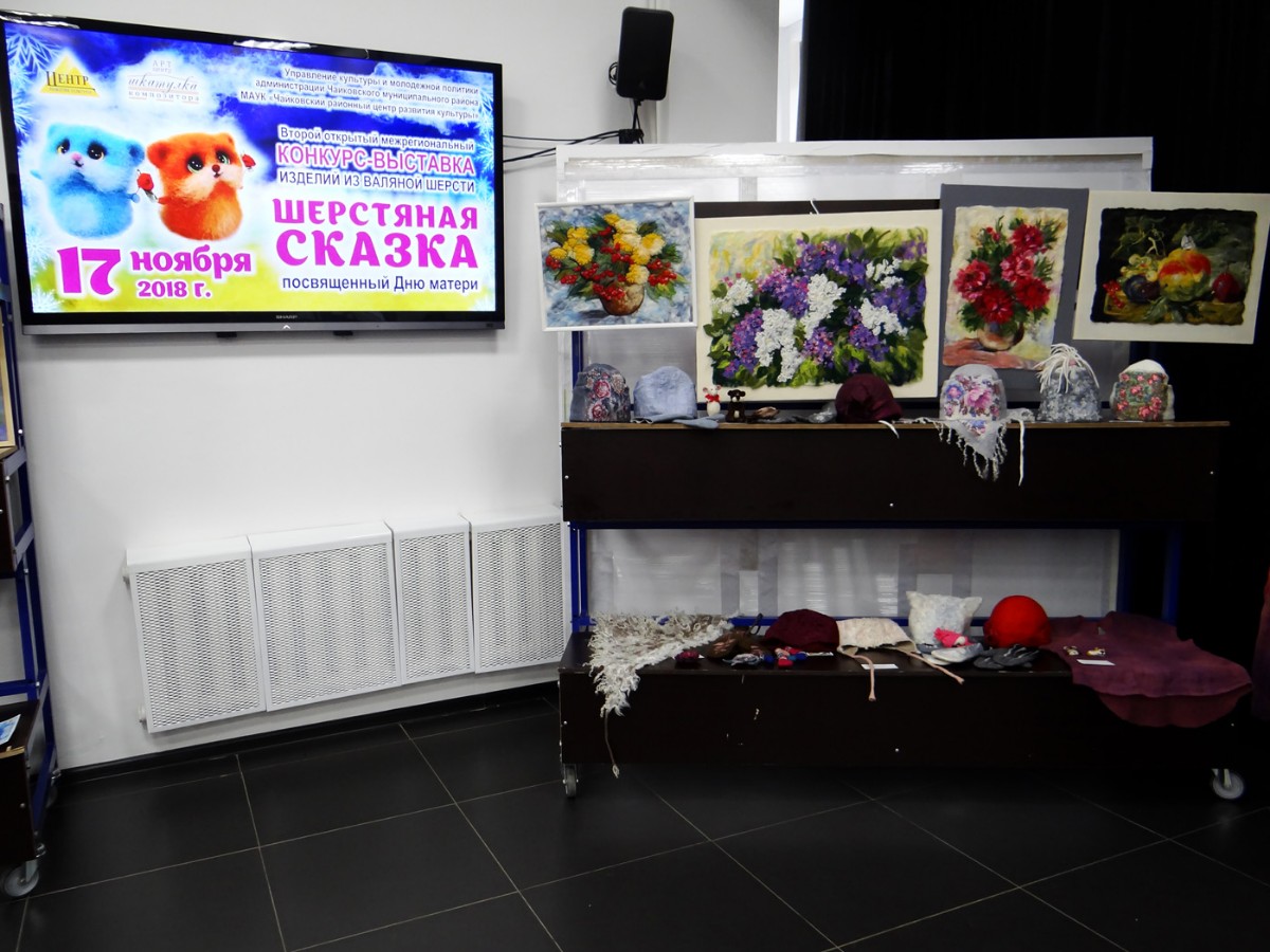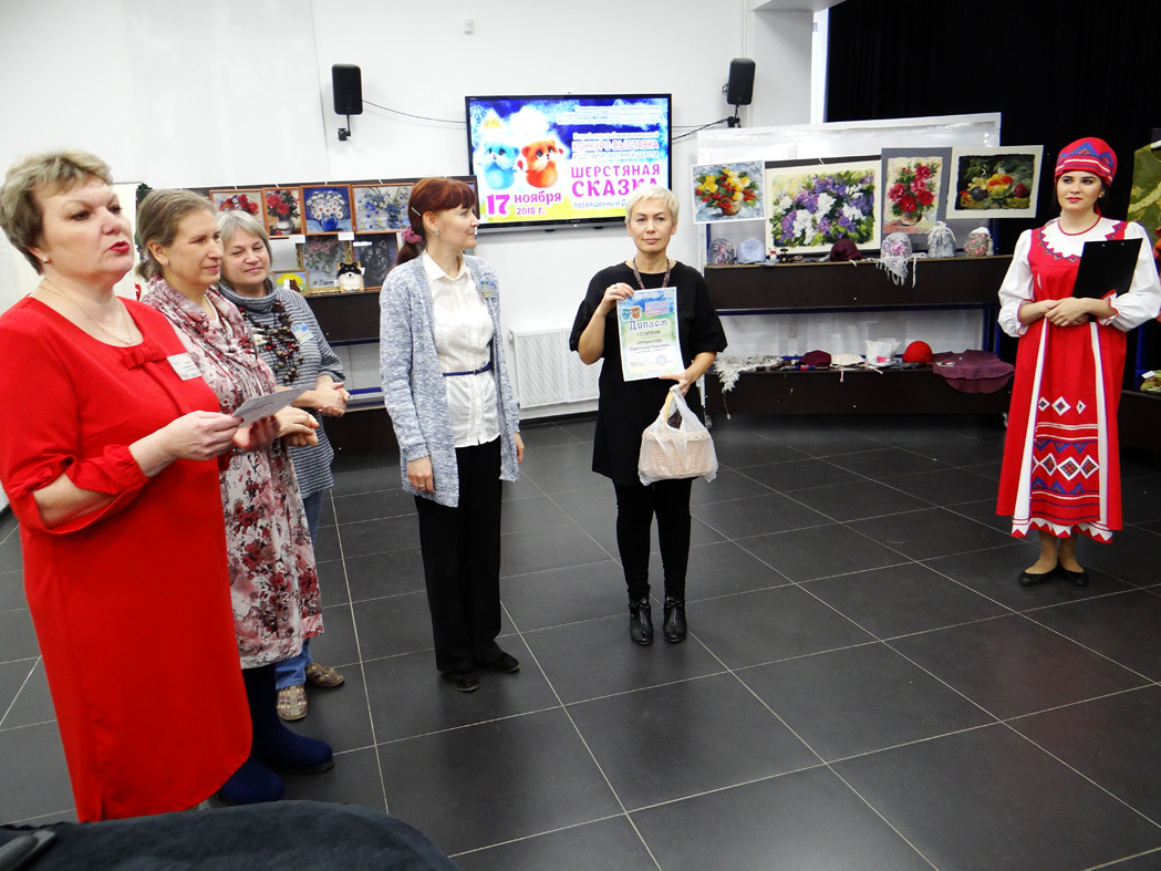 Затем состоялось знакомство с конкурсантами в творческих презентациях авторских композиций выставки. Участники представили свои готовые работы, рассказали об увлечении одним из самых нелёгких видов декоративно-прикладного творчества – валянии. Тема выставки-2018 называлась «Подарок самой доброй и родной», поэтому конкурсная экспозиция была представлена очень изысканными, но уютными вещами. Тончайшие платья и палантины, модные шляпки, береты и шапочки, рукавички и мягкие домашние туфли, подушки-думки и изящные игольницы, сумочки, футляры для телефона и кошельки – всё это из валяной шерсти! Поразили своим великолепием картины из шерсти: натюрморты, пейзажи, анималистический жанр.