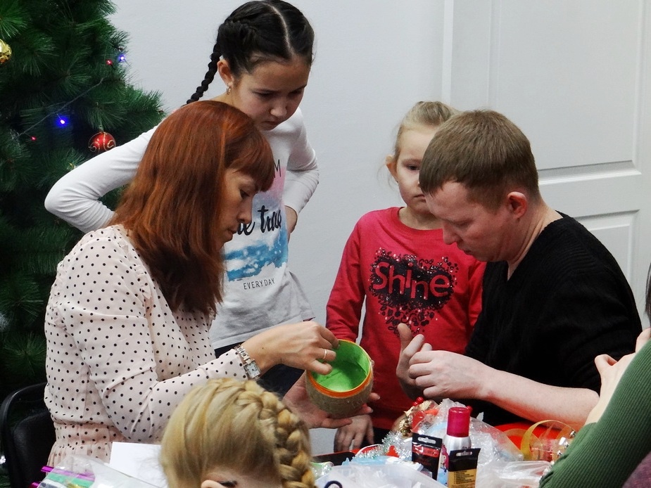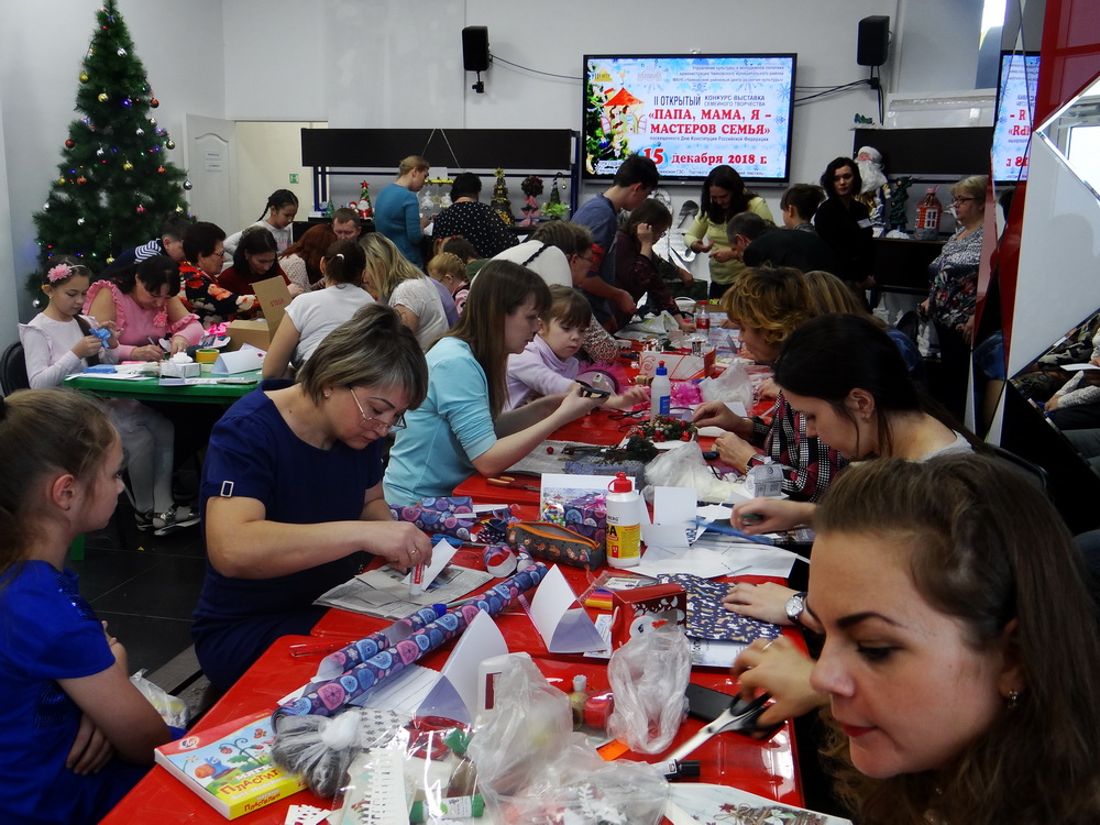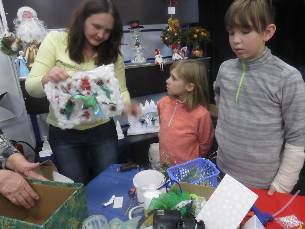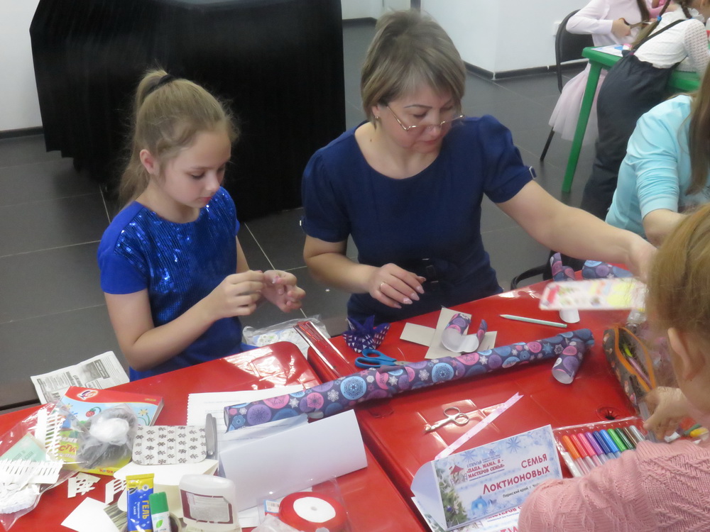 Одновременно в Арт-центре были проведены бесплатные мастер-классы педагогами ДДТ «Искорка»: «Новогодняя открытка в технике скрапбукинг», «Айрис-фолдинг «Новогодний гном», «Символ года». А так как само изделие изготавливается членами семьи или её отдельными представителями на месте, то многие ребятишки с огромным удовольствием стали участниками мастер-классов.