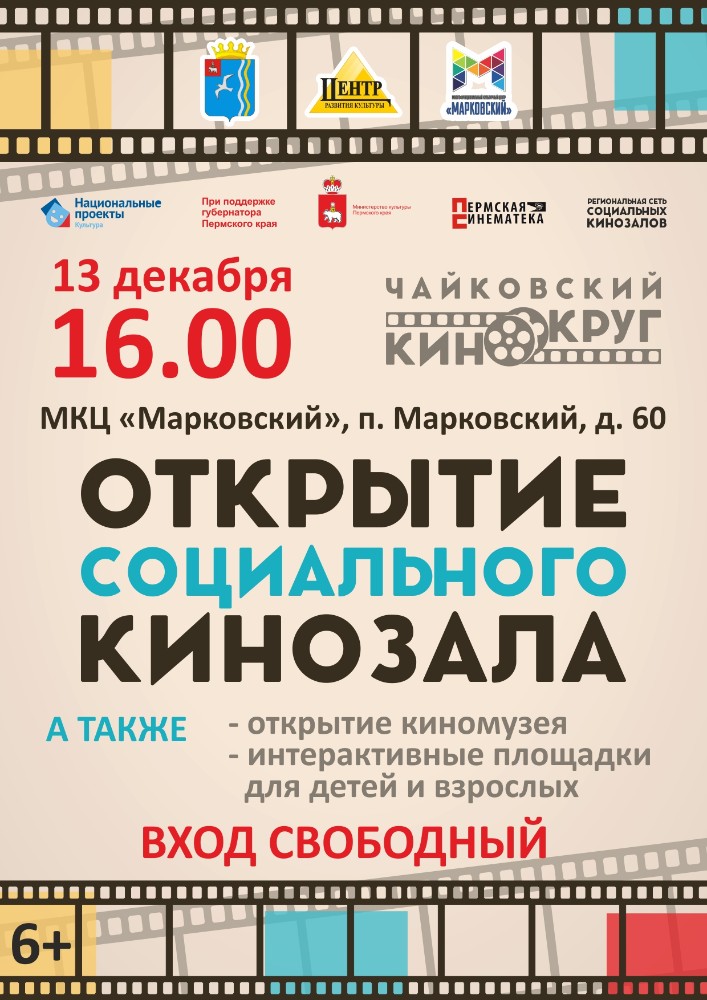 Торжественное открытие состоится в ближайшую пятницу, 13 декабря, в Многофункциональном культурном центре «Марковский» (п. Марковский, 60). В настоящее время идут работы по подготовке и монтажу проекционного оборудования, предоставленного КГБУ «Пермская синематека» при поддержке краевого Министерства культуры, завершено обучение кураторов социальных кинозалов.
