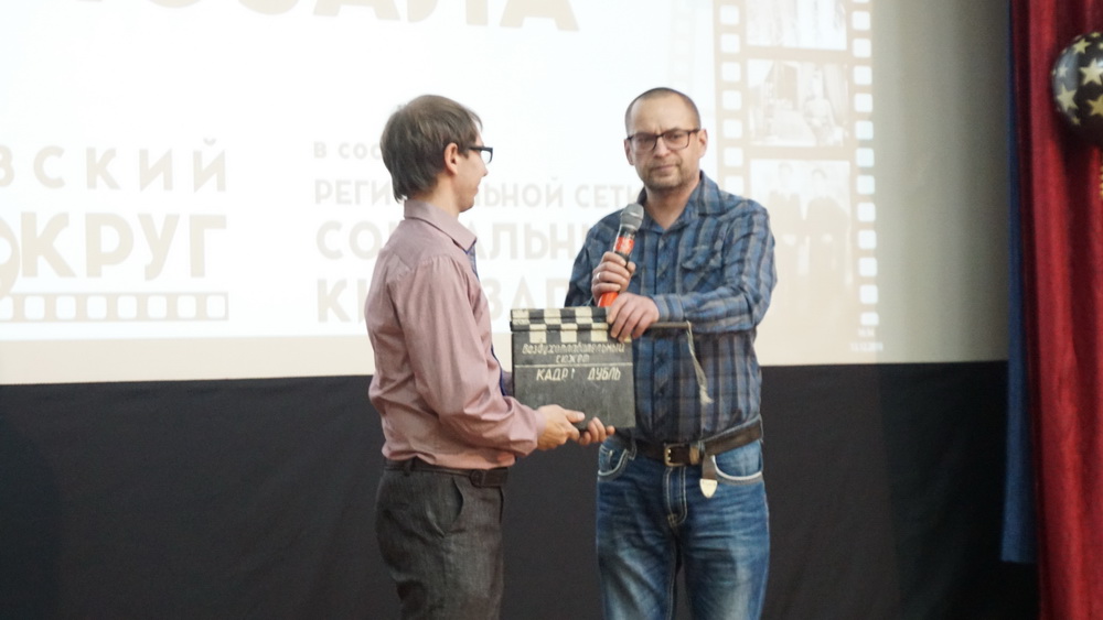 Почётный гость праздничного события - руководитель научно-методического центра КГБУ «Пермская синематека», руководитель проекта «Социальные кинозалы» Андрей Вилисов поздравил жителей и гостей п. Марковский с открытием кинозала, вручив куратору Марковского кинозала Юрию Чагину документ о прохождении обучения и раритетную хлопушку. После символического «хлопка» в зале погас свет и началось кино.