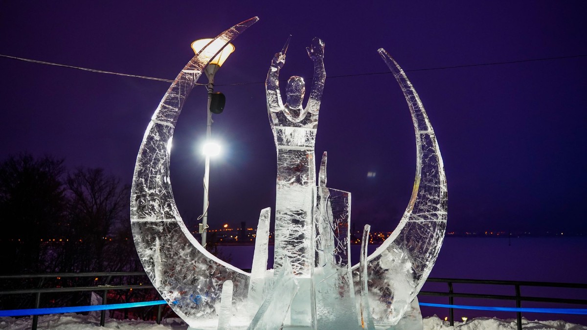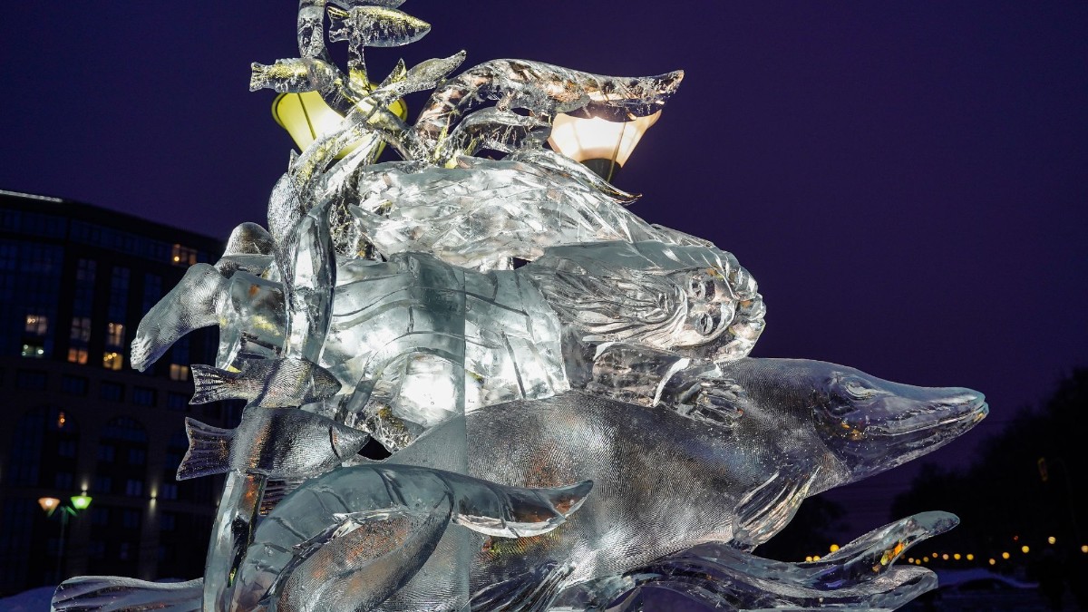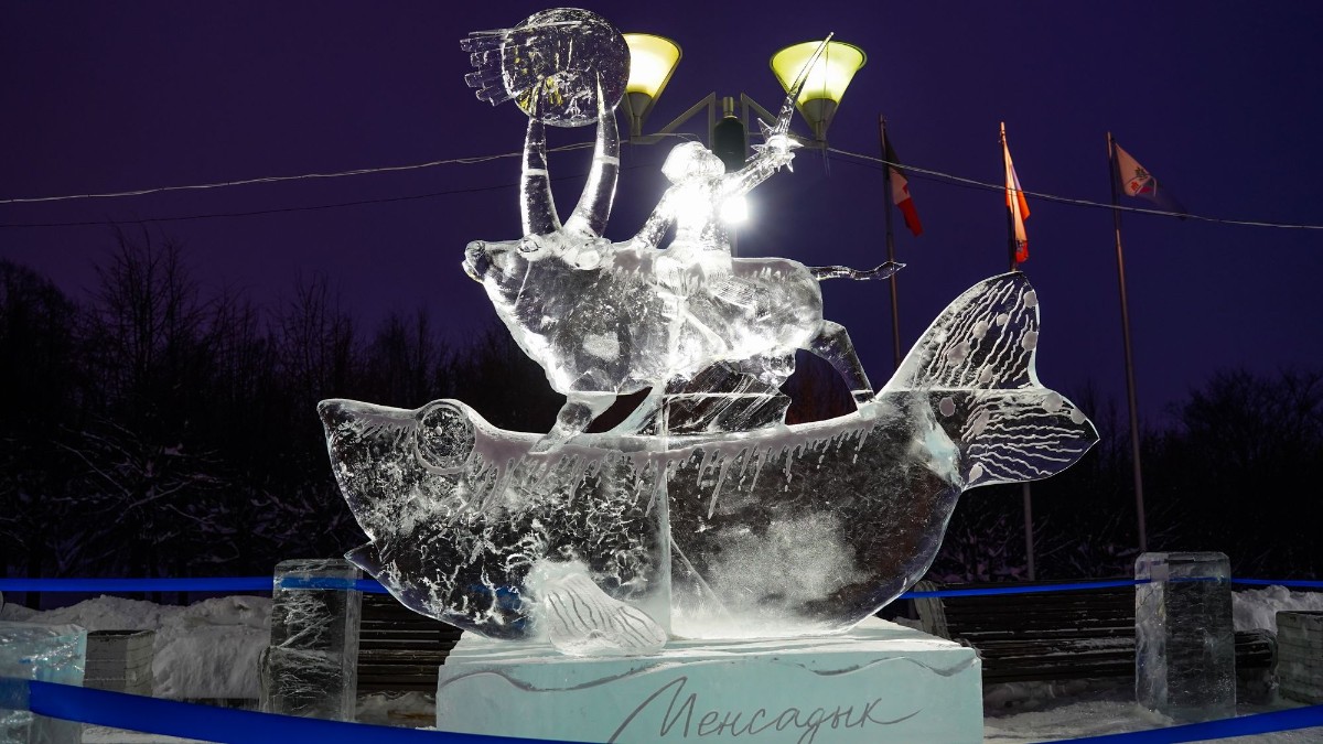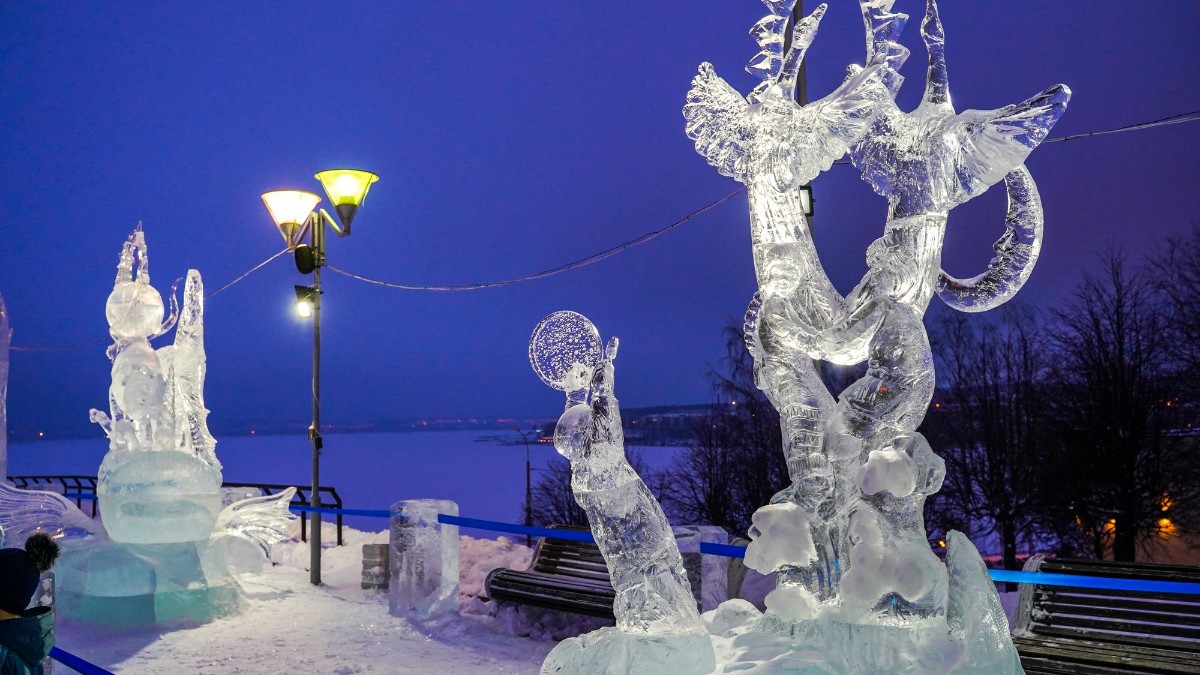 Мастера из нескольких городов России создали 15 ледяных скульптур в Ижевске на площади у монумента «Навеки с Россией». Городок появился в рамках фестиваля «Удмуртский лёд», который проходил с 27 января по 2 февраля.