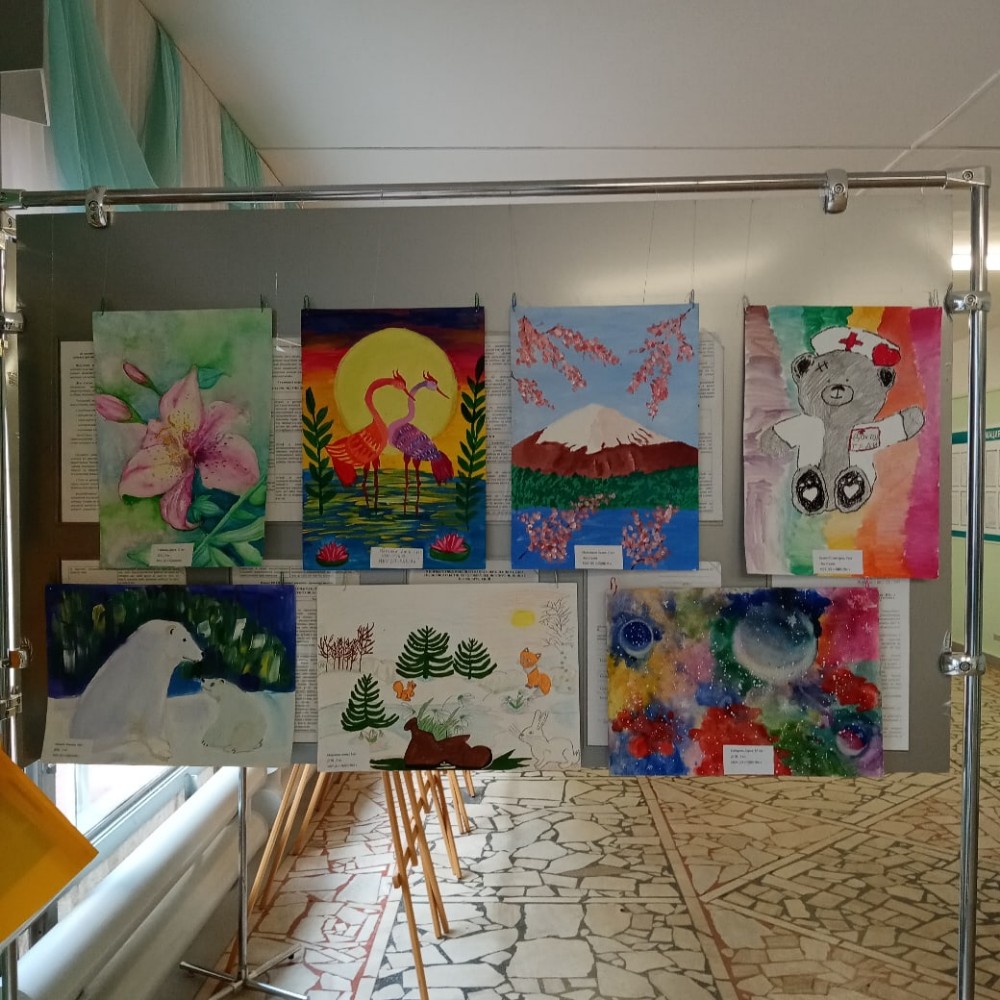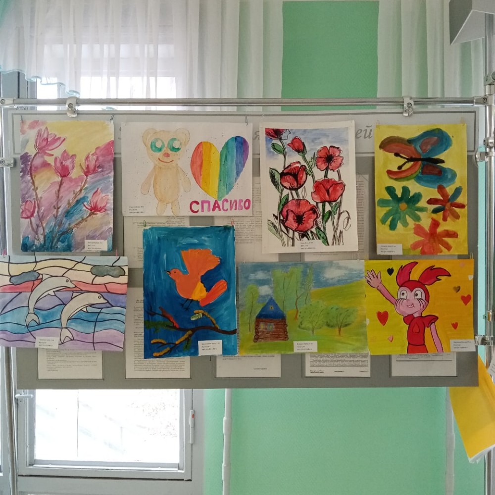 Всего на выставке представлено 35 художественных работ разных жанров – пейзажи, натюрморты, портреты, иллюстрации сказок. Некоторые ребята написали на своих рисунках добрые слова врачам: «Всё будет хорошо!», «Спасибо!», «Благодарим!».