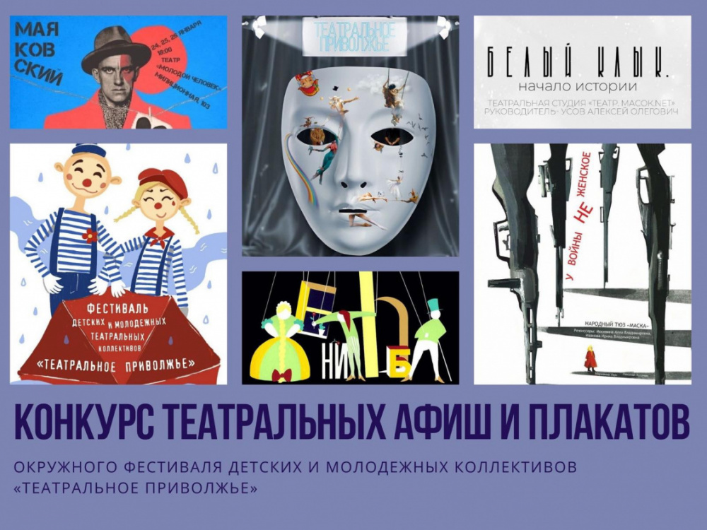 Фестиваль «Театральное Приволжье» должен быть главной темой конкурса афиш, плакатов или баннеров. Автор может отразить основную идею фестиваля, информацию о его спектаклях и финалистах. Творческие работы могут быть выполнены в различных техниках: графика, батик, компьютерный дизайн, краски, фотоколлажи.