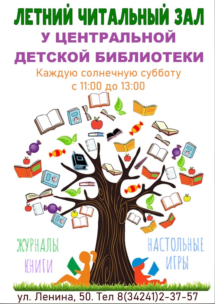 С начала лета каждую субботу, при условии хорошей летней погоды, рядом с Центральной детской библиотекой открывается детский летний читальный зал. На улицу выносятся столы, стулья, а вместе с ними – книги и настольные игры.