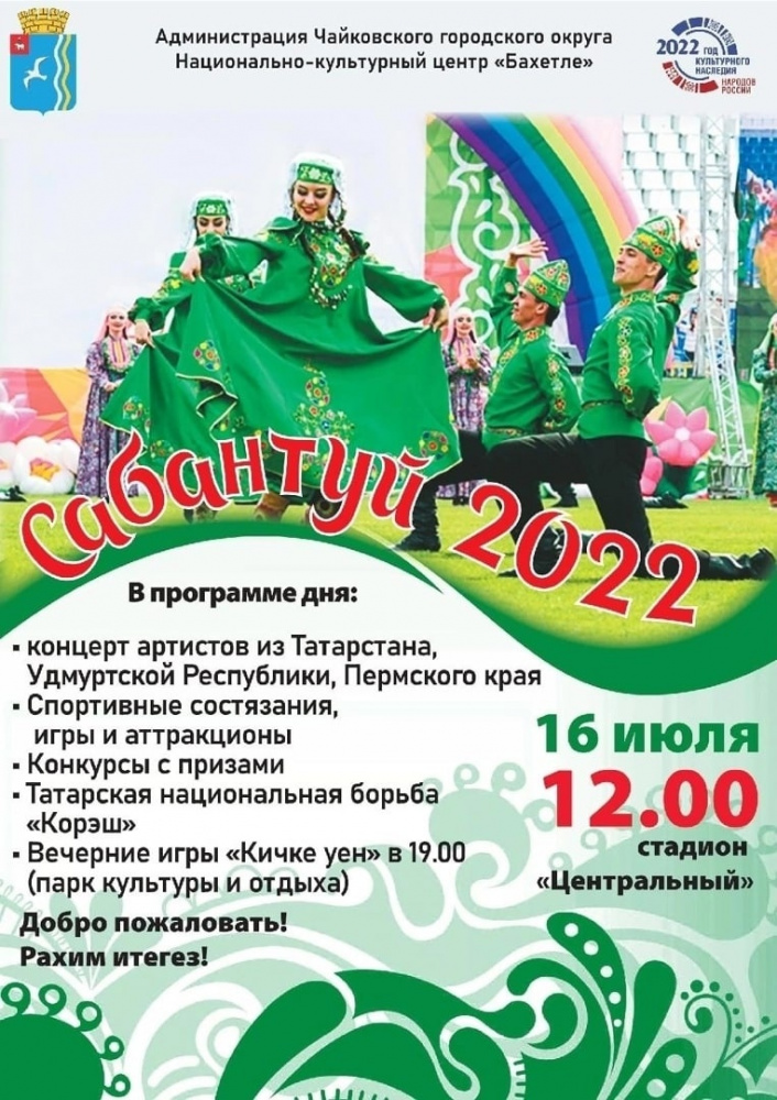 После долгого перерыва, вызванного запретом проведения массовых мероприятий из-за коронавируса, народные гуляния вновь приходят в нашу жизнь. В субботу, 16 июля, в 12. 00 на запасном поле стадиона «Центральный» чайковцы и гости города приглашаются на национальное мероприятие «Сабантуй».