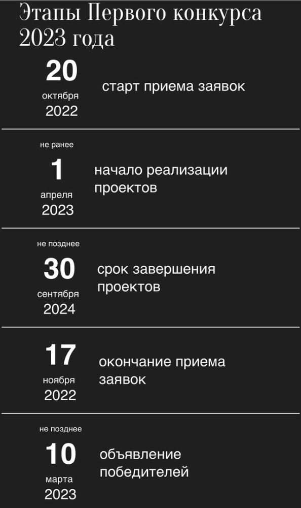 Заявки на конкурс подаются через информационную систему фондкультурныхинициатив.рф в срок до 17 ноября 2022 года.