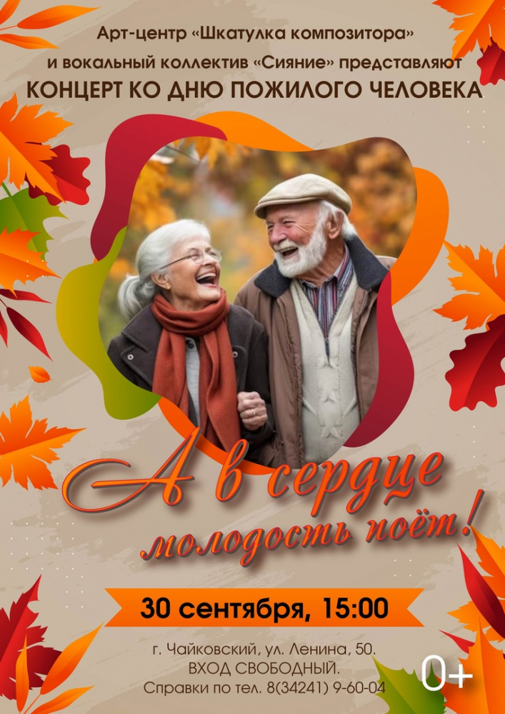 30 сентября в 15.00 в арт-центре «Шкатулка композитора» на Ленина, 50 вокальная студия «Сияние» представляет концерт, приуроченный к Дню пожилого человека. Вход свободный.