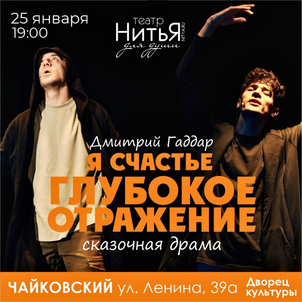 25 января в 19.00 во Дворце культуры состоится премьера сказочной драмы «Глубокое Отражение». Это увлекательное погружение в завораживающие глубины собственного совершенства. Это спектакль-зеркало, в котором можно разглядеть своё настоящее высшее предназначение, научиться слышать священный зов звезды по имени Счастье и различать его среди всех шумов бесконечности.