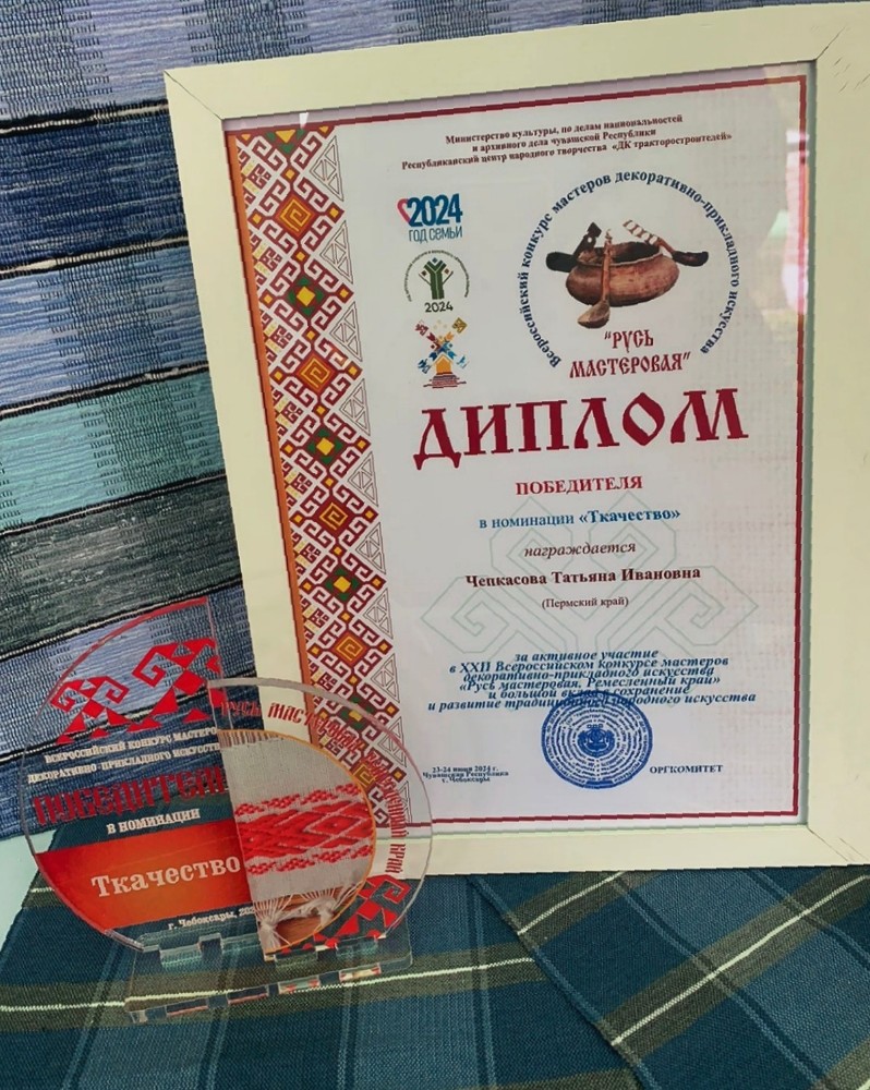 Татьяна Чепкасова одержала победу в номинации «Ткачество» на XXII Всероссийском конкурсе народных мастеров декоративно-прикладного искусства «Русь мастеровая. Ремесленный край», который проходил в Чувашии и завершился вчера, 24 июня.