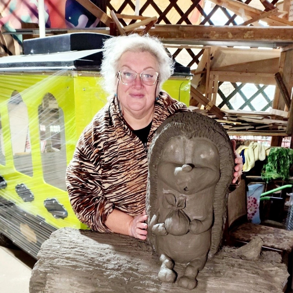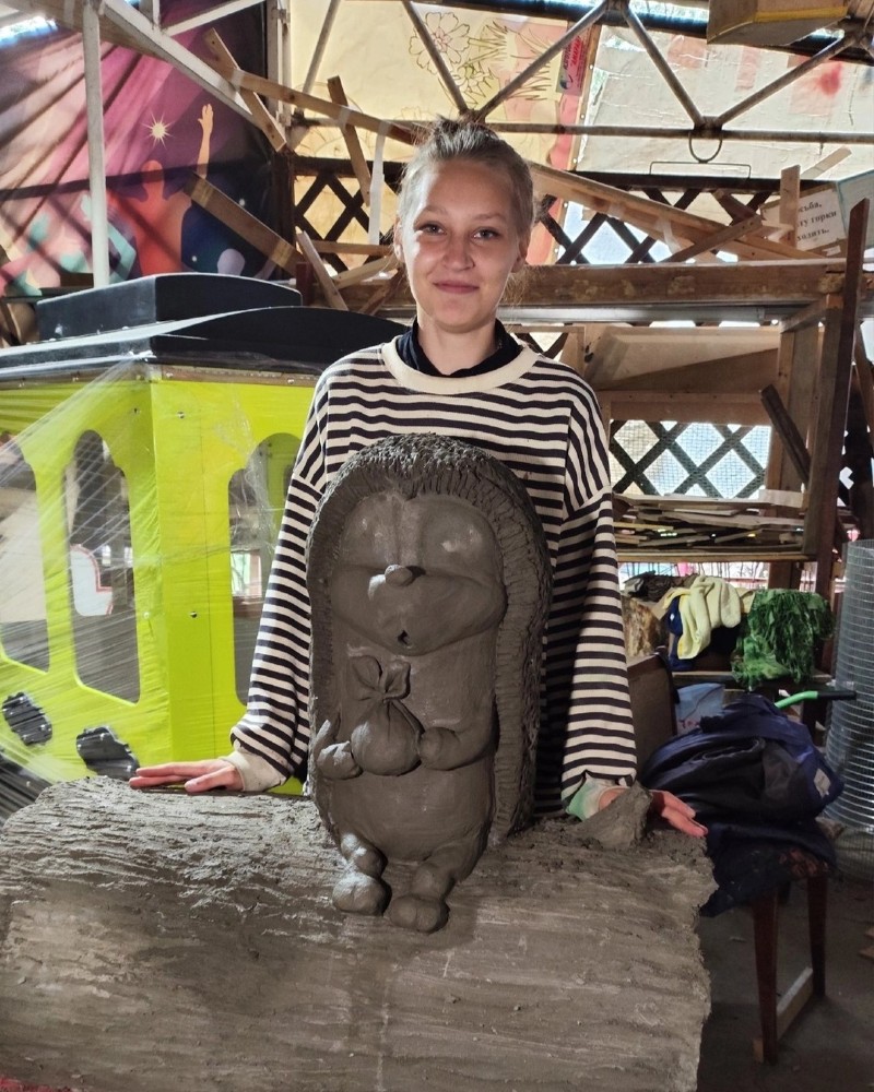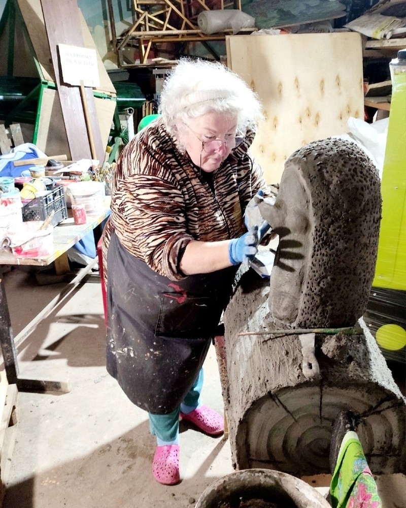 «Каркас для скульптуры изготовил наш плотник Роман, а в накладывании первого слоя бетона помогала моя помощница Яна, – рассказала она. – Вот так и рождаются скульптуры в нашем парке: я придумываю, команда моя подхватывает, вместе работаем и вот красота готова».