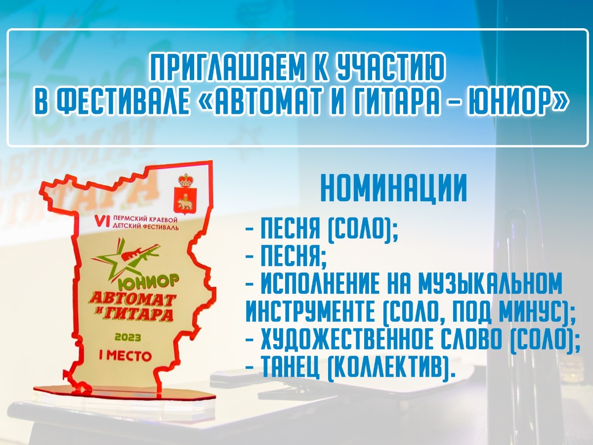 До 15 ноября учащиеся 5-11 классов могут подать заявку на фестиваль «АВТОМАТ И ГИТАРА – ЮНИОР», посвященный 80-летию Победы в Великой Отечественной войне.