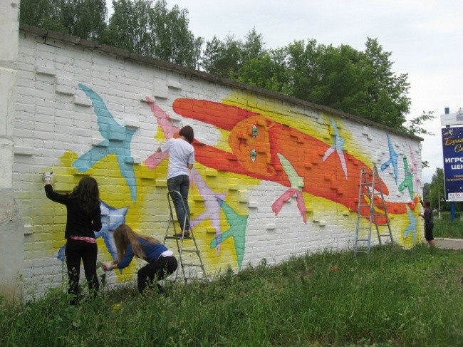 Данный проект осуществляется при поддержке Министерства культуры, молодёжной политики и массовых коммуникаций Пермского края. В результате сотрудничества с художниками на первом Форуме «Арт-Зарядка» на улицах города Чайковского появилась серия работ по проекту «Экология пространства». «Кот с птицами» - по улице Ленина,