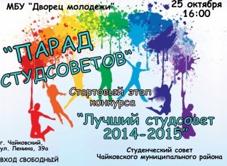 «ПАРАД СТУДСОВЕТОВ» - это стартовый этап конкурса «Лучший студсовет 2014-2015», который будет проходить с октября 2014 года по июнь 2015 года на территории Чайковского муниципального района.
