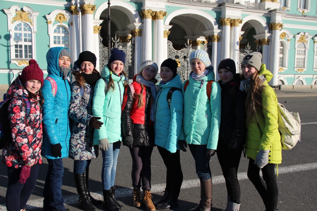 За небольшой период времени коллектив осуществил очень насыщенную впечатлениями культурно-творческую программу. Знакомство с северной столицей началось солнечным утром на Дворцовой площади - здесь как-то особенно ощущается величественная стать Петербурга. Затем посетили Царское Село, Екатерининский дворец с его легендарной Янтарной комнатой, Лицей, Петропавловскую крепость. Также юным талантам удалось побывать в богатейшем музее мирового искусства «Эрмитаже».