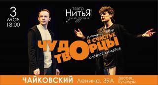 Театр «НитьЯ» приглашает чайковцев на слёзную комедию «Чудотворцы», которая состоится 3 мая во Дворце культуры.