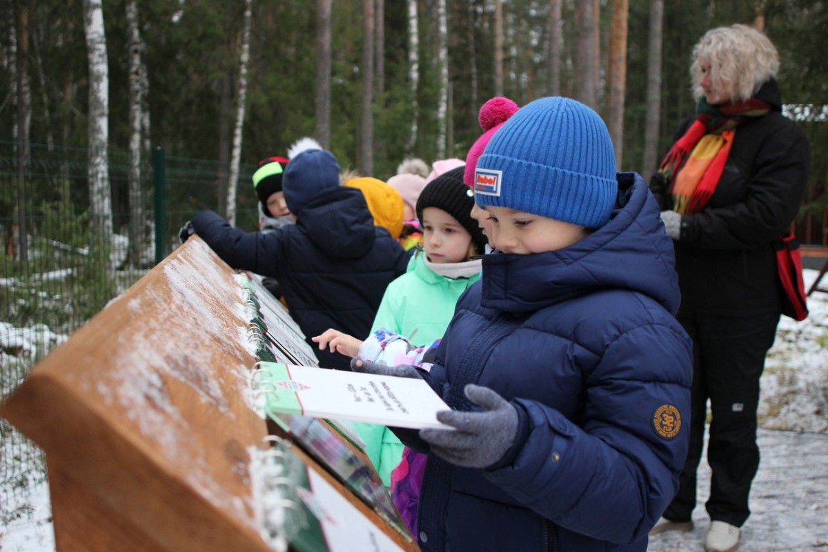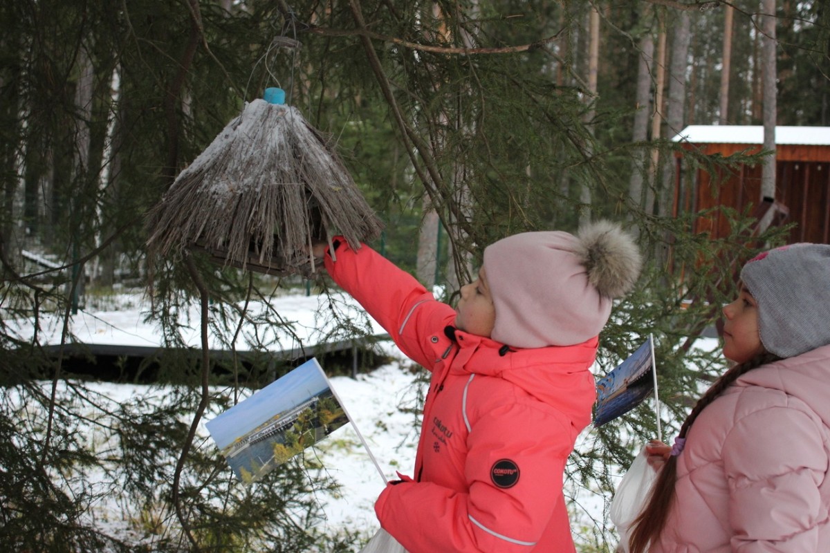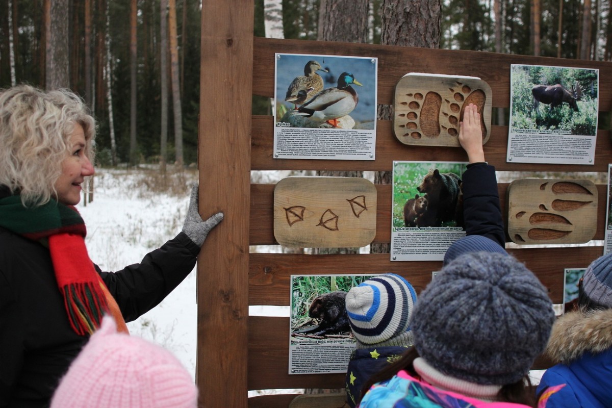 Первыми гостями экомаршрута стали ученики школы посёлка Волковский. Дети познакомились с полезной информацией, размещённой на красочных стендах, и помогли наполнить кормушки для птиц, установленные вдоль тропы.