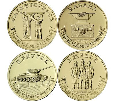 В этом году в серию монет «Города трудовой доблести» номиналом 10 рублей попали ещё четыре города, в числе которых Ижевск. Кроме него, в серию попали города Иркутск, Казань и Магнитогорск.