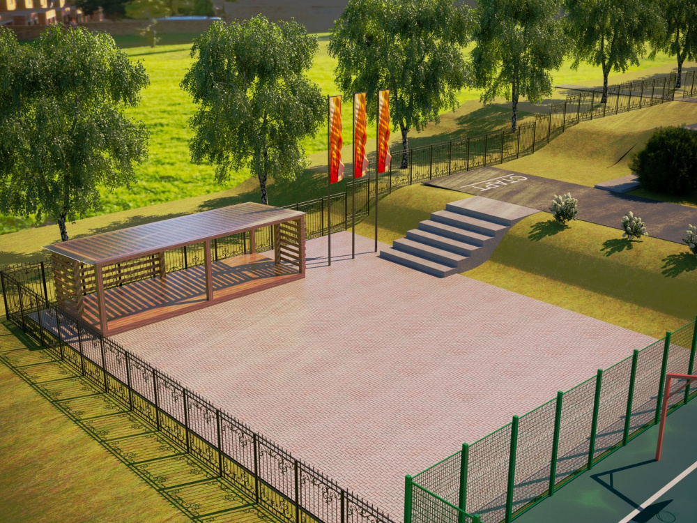 К этому времени в школе появятся площадка для проведения мероприятий с флагштоком и сценой, зона активного отдыха для игры в лапту и место для спокойного отдыха с цветниками и лавочками. На средства экономии дополнительно будут установлены теннисные и шахматные столы, интерактивный стенд и метеостанция.