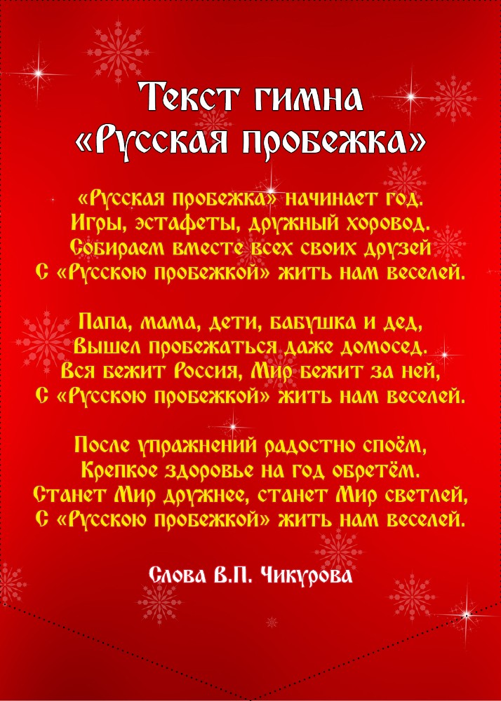 По традиции сбор всех желающих состоится 1 января 2023 года в 11.00 утра возле Пенсионного фонда. Организаторы рекомендуют заранее выучить слова гимна «Русской пробежки», написанные учредителем Фонда «Светлая Идея» Владимиром Павловичем Чикуровым, а также взять с собой чай, угощения и хорошее настроение.