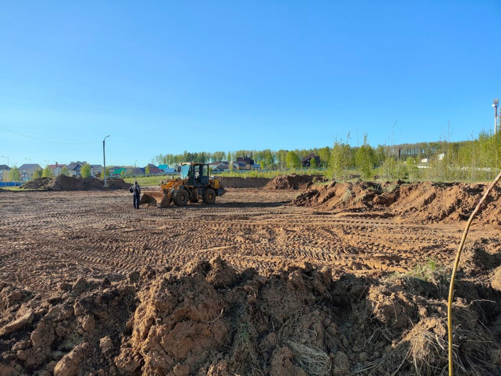Уже завершен этап срезки грунта и выполнены работы по его вывозу. Впереди — устройство дренажной системы для футбольного поля, которая обеспечит его долговечность и высокое качество.