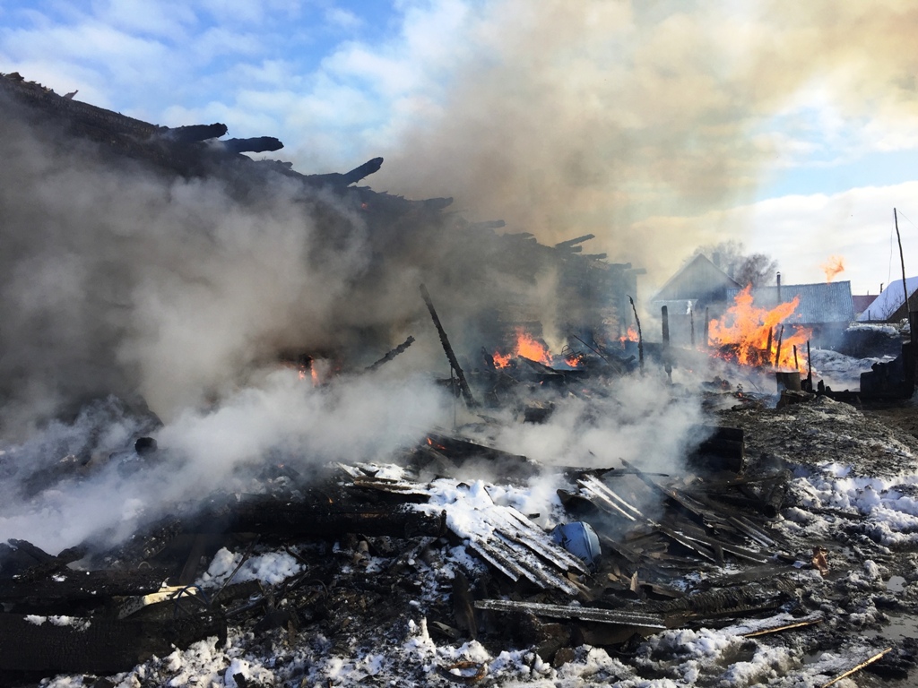 Около полудня 12 февраля на пульт диспетчера противопожарной службы поступило сообщение о пожаре, произошедшем в бревенчатом четырёхквартирном доме по улице Новая в посёлке Бурёнка. По прибытию к месту пожара открытым пламенем горел дом и кровля дома.