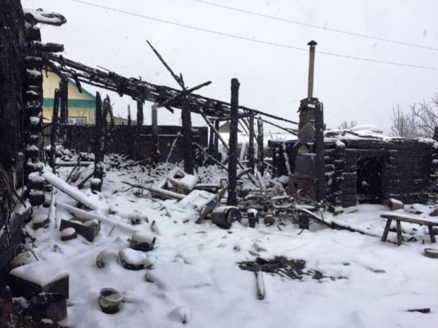 В результате пожара травмировано два человека, а семья с четырьмя детьми осталась без крыши над головой - в пожаре сгорел дом с надворными постройками.
