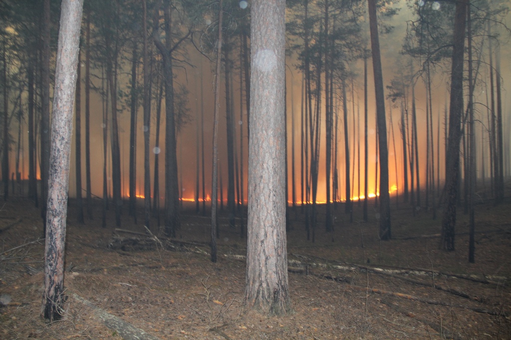 Прибыв на место возгорания, участникам тушения пожара пришлось столкнуться с широким фронтом в виде сплошной стены огня, пожар несколько раз переходил в верховой, чему способствовал сильный шквалистый ветер.