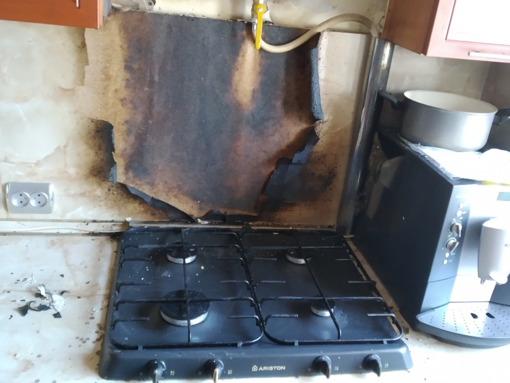На следующий день в 16 ч 00 мин поступило сообщение о возгорании в кухне квартиры, расположенной в многоквартирном доме на ул. Карла Маркса. В результате пожара повреждён кухонный гарнитур, бытовая техника, закопчена стена и потолок кухни. Общая площадь пожара составила 2 кв. м.