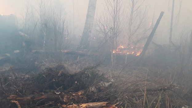 Осложнило тушение лесного пожара отсутствие подъездов из-за переувлажненной почвы, лесопожарная техника тонула.