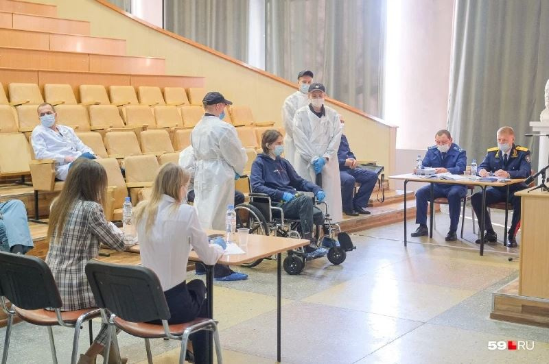 Заседание суда было выездным: оно проходило в Пермской краевой клинической больнице, где сейчас находится на лечении молодой человек. Обвиняемого привезли на суд на коляске.