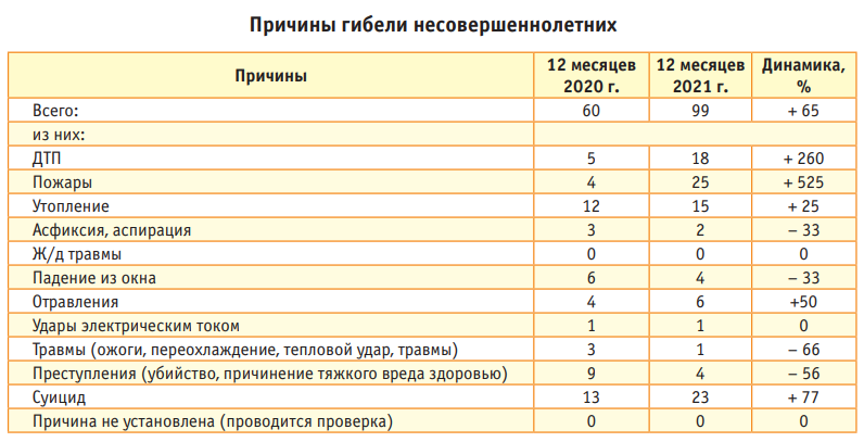 Всего же за 2021 год на территории Пермского края от неестественных причин погибло 99 детей, что на 65% больше по сравнению с 2020 годом.