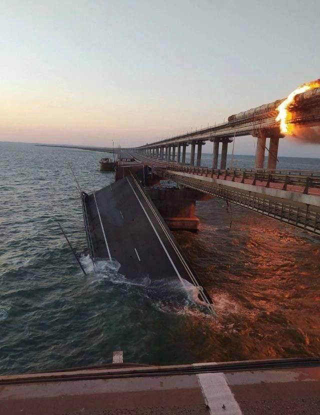Взрыв и обрушение пролётов на Крымском мосту