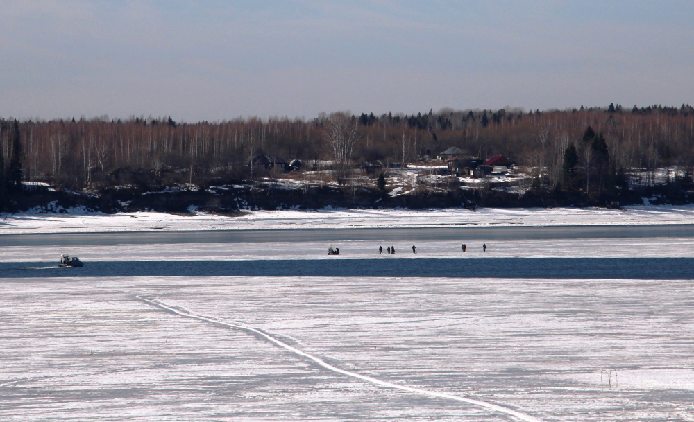 В четверг, 30 марта, на Каме в районе Добрянки льдина с рыбаками откололась от берега и поплыла вниз по течению.