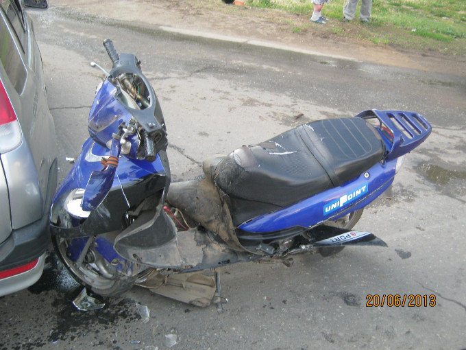 Вечером 20 июня по улице Советская в направлении улицы Строительная двигался автомобиль TOYOTA-SPRINTER-CARIB, при повороте водитель не предоставил преимущество другим участникам дорожного движения. В него врезался скутер МОТОР, в данный момент водитель скутера находится в больнице.