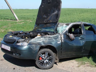 Автомобиль «Lada Priora» врезался в дерево и опрокинулся