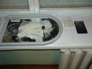 В ходе обыска в квартире было изъято: вся химическая посуда, фасовочный материал, сырье для производства наркотика, спецодежда и конечный продукт – мефедрон. Его наркохимики особо не прятали. 30 граммов белого порошка в открытом виде сушилось на зеркале, размещенном на подоконнике. Тут же лежали электронные весы с остатками наркотического средства. Впрочем, это не единственная находка оперативников. Наркотик также был обнаружен на кухонной полке уже расфасованный и приготовленный к сбыту. Для удобства приема порошка разовые дозы наркохимики засыпали в капсулы от лекарственных препаратов, которые также находились в квартире.