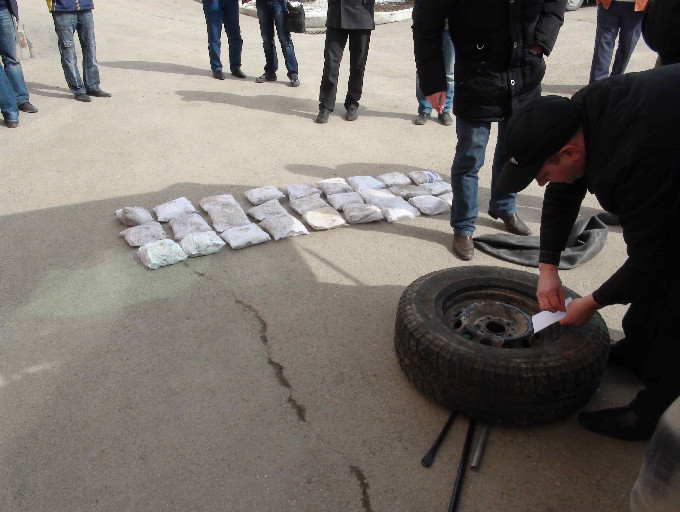 Весной 2013 года в Перми на улице Шоссе Космонавтов сотрудники наркоконтроля осуществили план-перехват автомобиля «Фольксваген Каравелла», в котором по оперативной информации перевозили наркотики. В ходе осмотра транспортного средства в запасном колесе оперативники обнаружили 27 пакетов героина, каждый из которых весом в 1 килограмм. На 13 упаковках с наркотическим средством, завернутых в тканевые мешки стояла печать с изображением в виде лошади и надписью арабской вязью, на 14 – стояла печать с изображением в виде летящей птицы и надписью «2012». Указанные метки свидетельствуют о том, что героин был произведен в 2012 году в Афганистане, а также о его высоком качестве. До потребителя наркотик обычно доходит в разбавленном виде, и его масса могла увеличиться до 150 килограммов. В результате операции было задержано три человека. В тот момент они передвигались в сторону одного из салонов шиномонтажа, чтобы прикрепить колесо, в котором были спрятаны наркотики, к днищу автомобиля с целью конспирации. В ходе обыска по месту временного проживания злоумышленников в съемном жилье по улице Ленина оперативники обнаружили упаковочный материал, в который заворачивали запрещенное вещество. Оперативный сотрудник: «В этом пакете были перевезены наркотики. Вся обмотка с тех пакетов, которые уже изъяты». Известно, что все трое – уроженцы одного села в Таджикистане. На начальном этапе расследования самый молодой из них, игравший роль водителя, пытался взять всю вину на себя, утверждая, что его соотечественники являются законопослушными гражданами. Несмотря на это следствие доказало их непосредственное участие в совершении преступления. На данный момент уголовное дело по ч. 5 ст. 228.1 УК РФ передано в Индустриальный районный суд г. Перми. Членам организованной преступной группы, обвиняемым в совершении преступления, грозит наказание в виде лишения свободы на срок от 15 лет до пожизненного.
